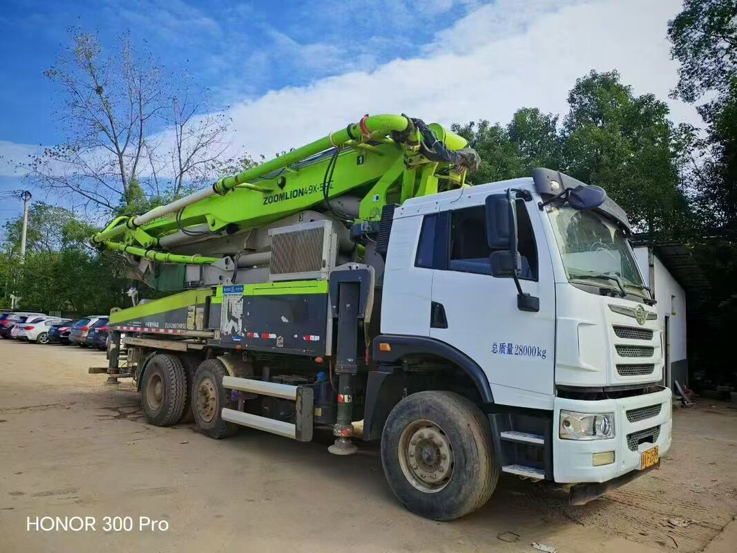 Этот автобетононасос (модель: ZLJ5280THBJE) произведен компанией Zoomlion Heavy Industry Science and Technology Co., Ltd. Он был выпущен в марте 2021 года и имеет серийный номер 016396A1210010. С моделью шасси CA5300THBPIK2T2BE5A81 и моделью двигателя CA6DL1-32E5 (максимальная чистая мощность: 235 кВт при 2300 об/мин), он предлагает максимальную вертикальную досягаемость 42,3 м, горизонтальную досягаемость 37,65 м и теоретическую производительность по бетону 100/60 м³/ч. Он может подавать бетон под давлением 8/15 МПа, имеет полную массу транспортного средства 28000 кг, массу снаряженного транспортного средства 27870 кг и размеры 10950 мм * 2550 мм * 3960 мм.